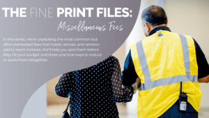 Have you ever reviewed an event bill and found an unwelcome surprise? You’re not alone. In this series, we’re unpacking the most common but often overlooked fees that hotels, venues, and vendors add to event invoices. Whether it’s a mysterious service charge or a hidden setup fee, we’ll help you spot them before they hit…