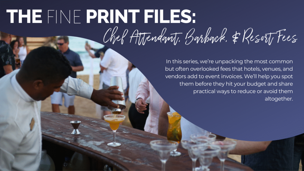Have you ever reviewed an event bill and found an unwelcome surprise? You’re not alone. In this series, we’re unpacking the most common but often overlooked fees that hotels, venues, and vendors add to event invoices. Whether it’s a mysterious service charge or a hidden setup fee, we’ll help you spot them before they hit your budget and share practical ways to reduce or avoid them altogether.