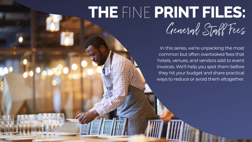 Have you ever reviewed an event bill and found an unwelcome surprise? You’re not alone. In this series, we’re unpacking the most common but often overlooked fees that hotels, venues, and vendors add to event invoices. Whether it’s a mysterious service charge or a hidden setup fee, we’ll help you spot them before they hit your budget and share practical ways to reduce or avoid them altogether.