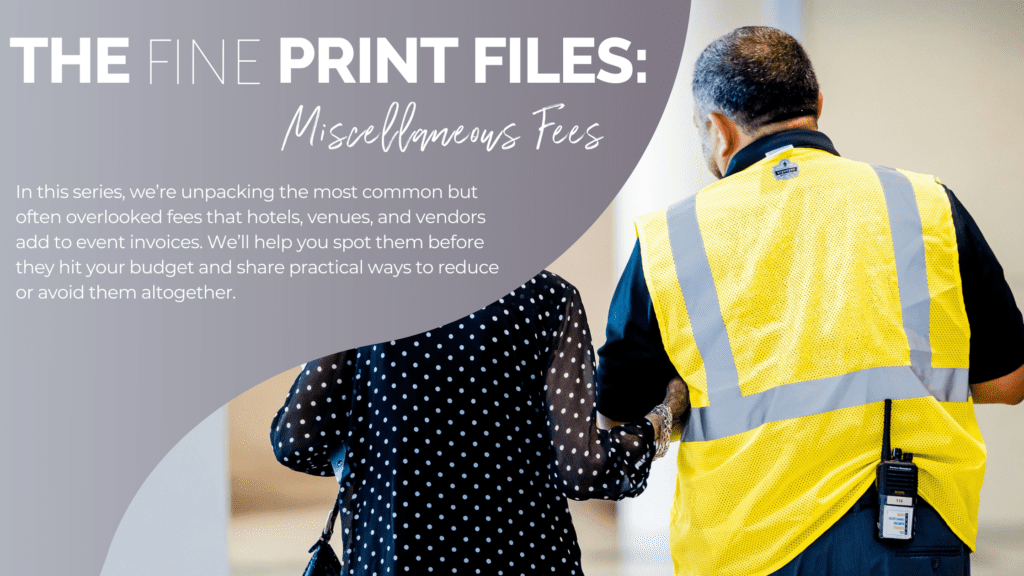 Have you ever reviewed an event bill and found an unwelcome surprise? You’re not alone. In this series, we’re unpacking the most common but often overlooked fees that hotels, venues, and vendors add to event invoices. Whether it’s a mysterious service charge or a hidden setup fee, we’ll help you spot them before they hit your budget and share practical ways to reduce or avoid them altogether.